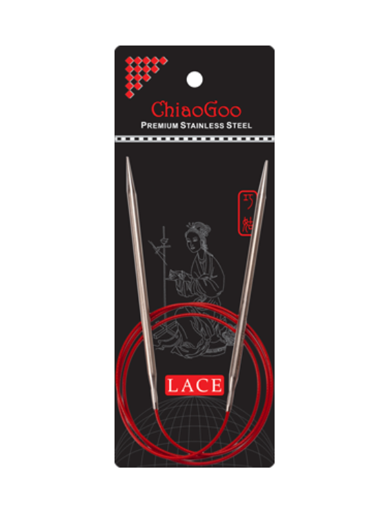 RED Lace™ 40″ (100 cm) surgical stainless steel circulars have a smooth, satin-sheen finish and memory-free, multi-strand, steel, nylon-coated, red cable. Lace tips are machine-precisioned. Needle size is laser imprinted on each circular.