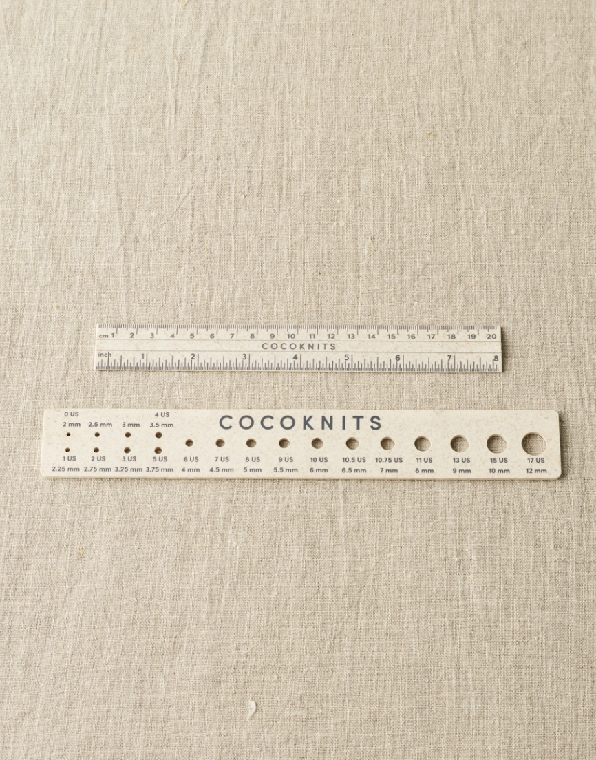 Designed to be used with our Maker’s Board, the handy Ruler and Gauge are also useful on their own. Magnets are embedded (without glue) in the back of each tool so they attach to the Maker’s Board, or any metal surface. In addition to measuring and checking knitting needle sizes, these tools can be used as straight edges on the Maker’s Board to help track patterns and charts. Plastic free, they are made of PLA (plant fiber, 100% biodegradable plant fiber, not water soluble) in a charming speckled linen color