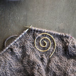 A spiral cable needles in 2 color options. A fun twist on a classic tool! Doubles as a shawl pin.
