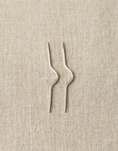 Most knitters are familiar with the metal needle with the dip in the middle for holding stitches while working a cable. I wanted to be sure these were available in a length that is perfect to go on the Cocoknits Maker’s Keep – not too long that it will stab your arm, not too short that they’re too hard to use.