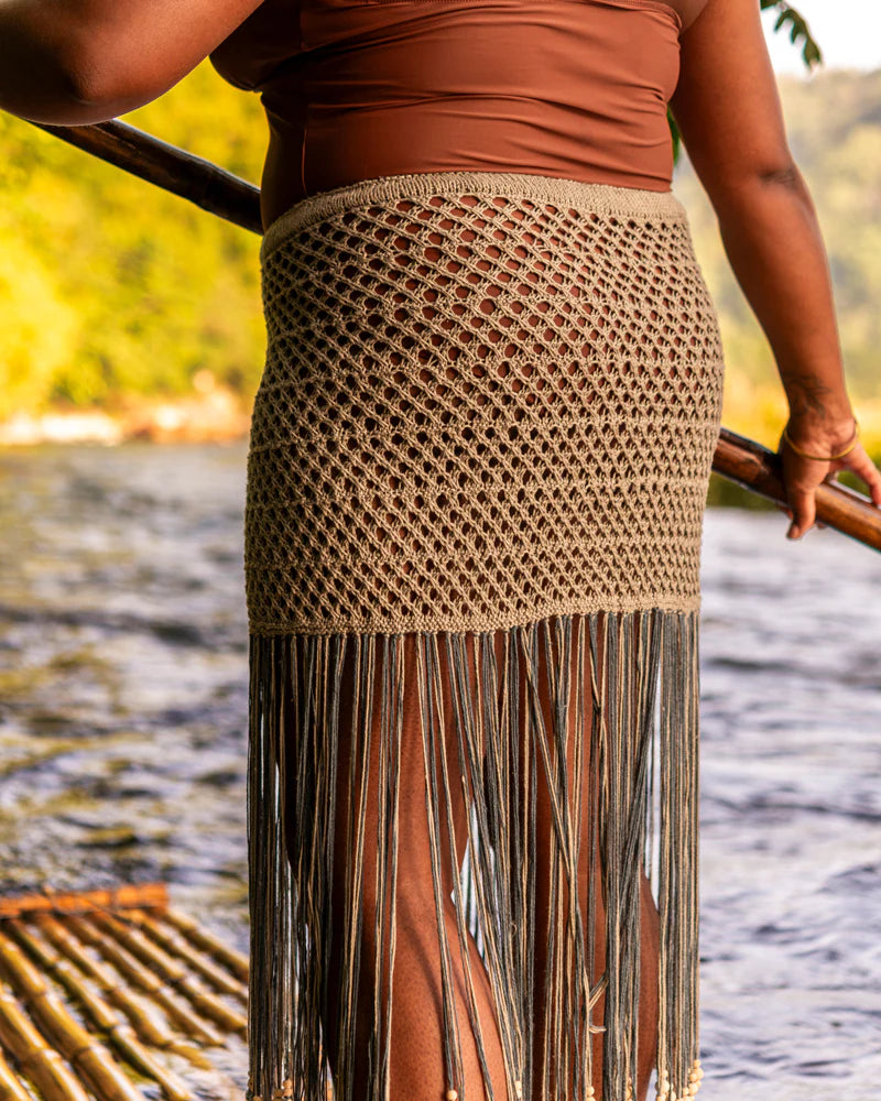 Island Vibes: Summer Knits by Sasha Hyre features nine patterns for summer knits: three tops, a cardigan, a shawl, a dress, a skirt, a sarong and a bag. Each piece is designed to be worn independently but can also be combined for stylish summer looks. This versatile capsule collection is designed mostly with linen, silk and cotton yarns that are perfect for warm weather. Decorative elements and techniques such as fringes, modular knitting and intarsia, are used in a modern and vibrant way.