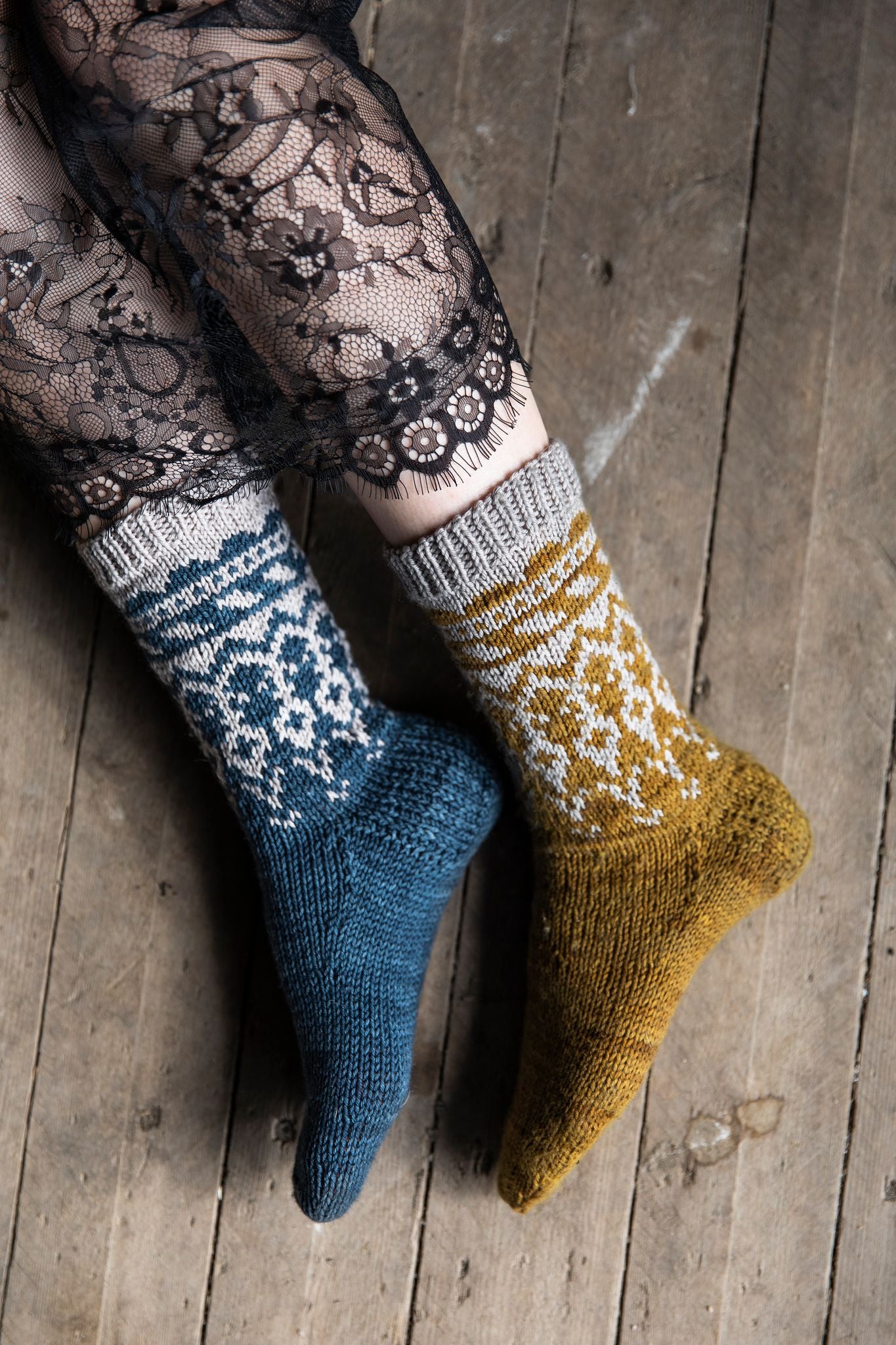 All of the designs are knitted in one piece and the colourwork only uses two colours at the same time, making them accessible to all levels of knitters. The patterns use a variety of lighter and heavier yarns and include several options for suitable yarns.