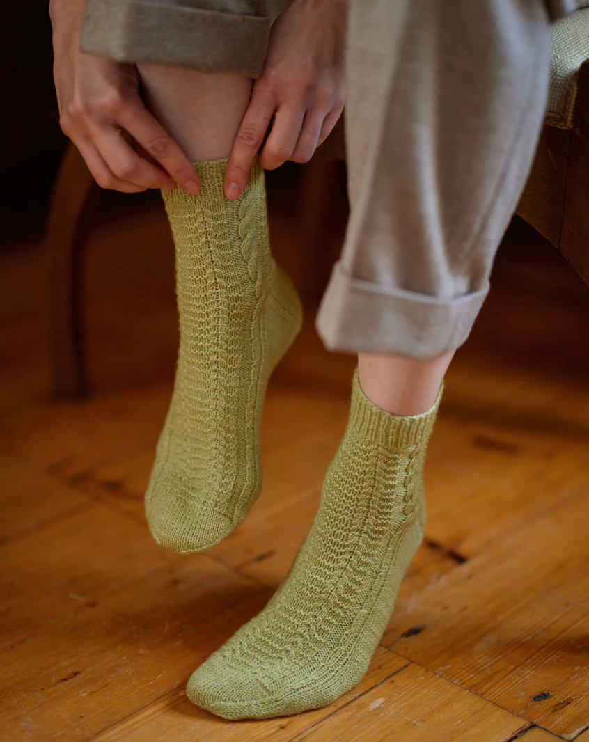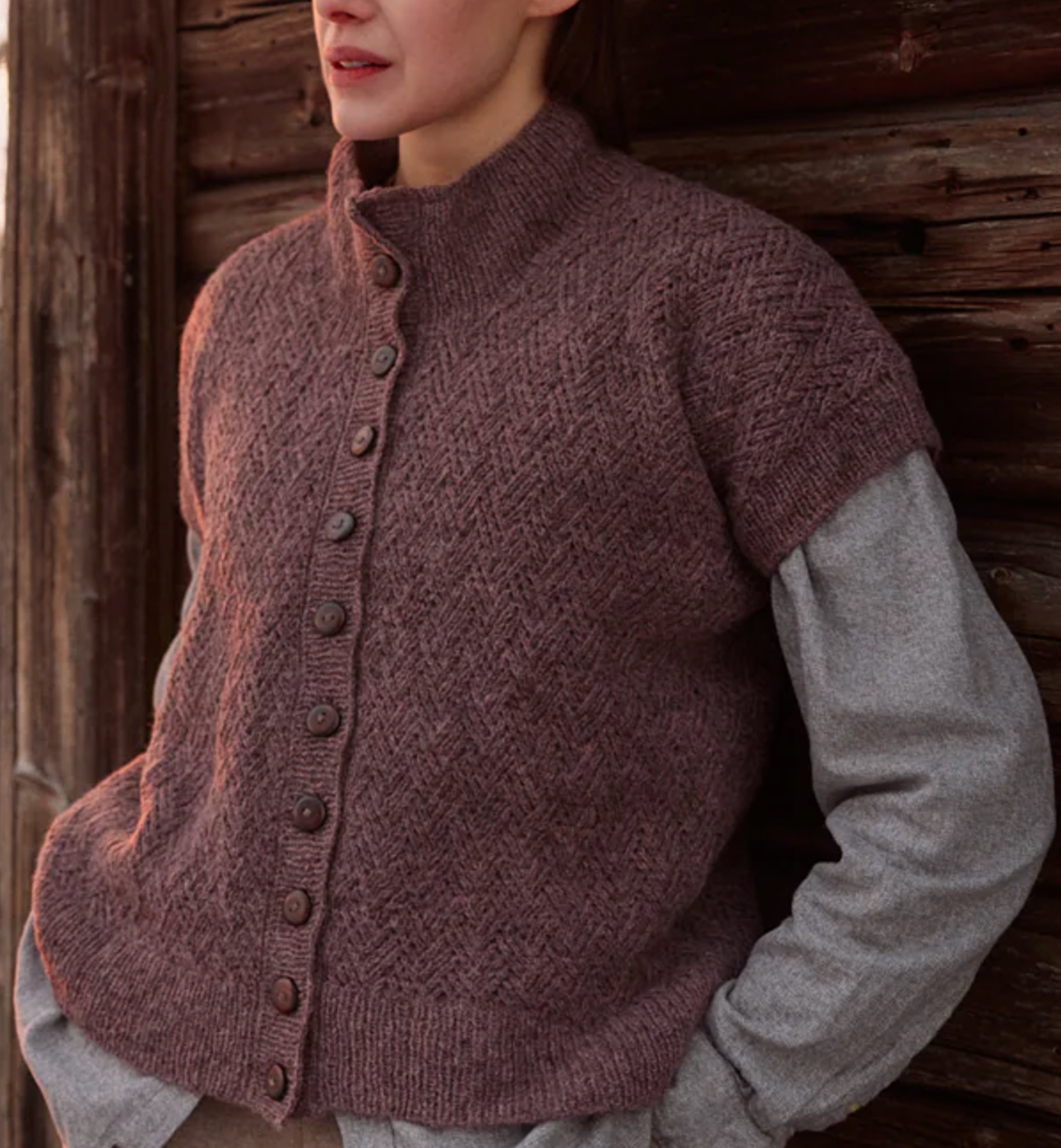 - 11 knitting patterns: 5 sweaters, 2 cardigans, 1 vest, 1 shawl, 1 hat and 1 pair of socks.