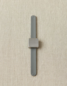 Magnetic Slap bracelet (Gray band) called the Makers Keep to keep all your supplies close at hand! Any magnetic stitch marker, cable needle, snip, pins, row counter, etc stays in easy reach!