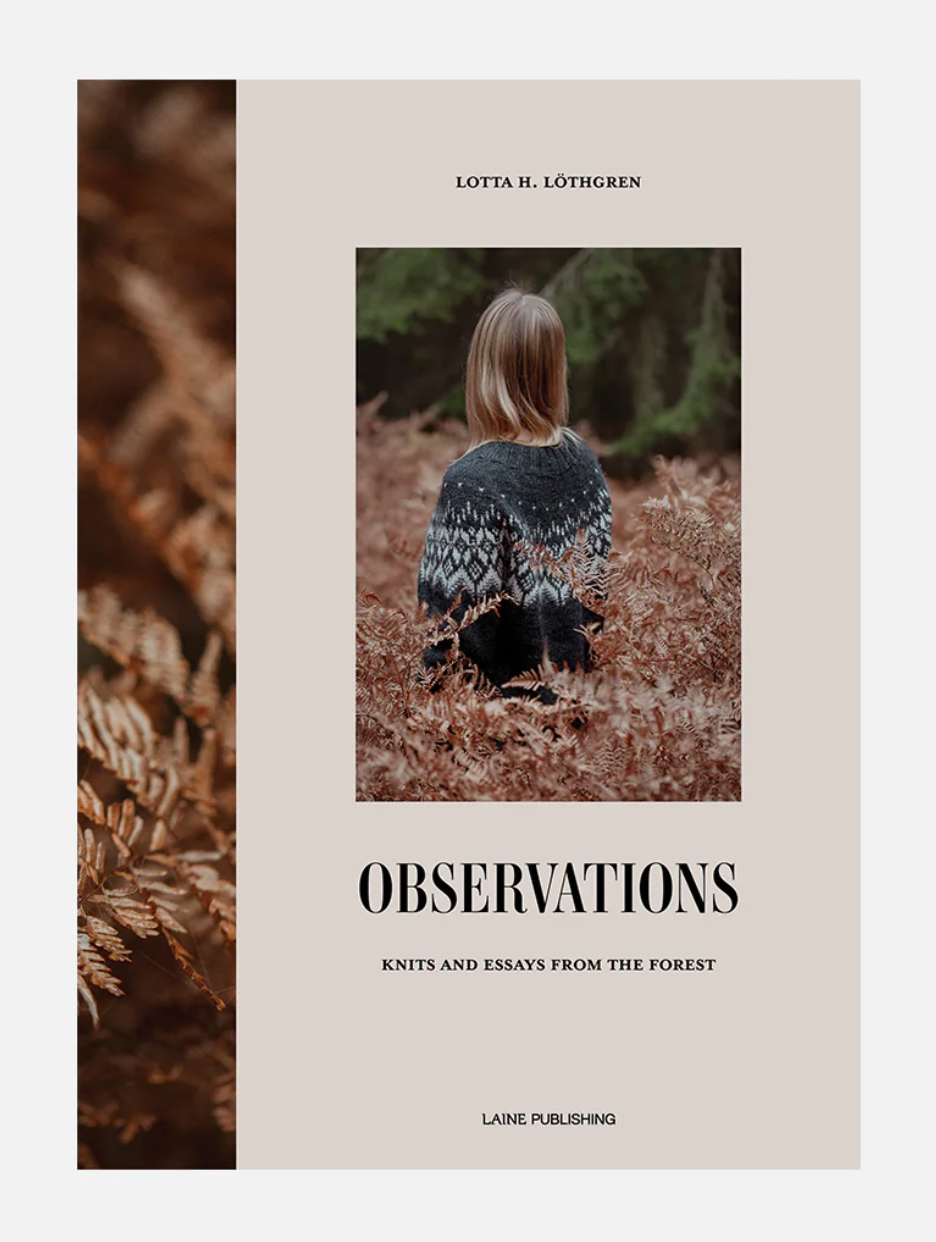 Observations: Knits and Essays from the Forest is a knitted walk through the forest and the seasons. With a keen eye for the innate wonders of the natural world, Lotta H. Löthgren combines knitwear designs with notes of the landscape she calls home: a small village in the southeast of Sweden, nestled among forests and lakes. There, she spends her days writing, knitting, designing knitwear and hand-dyeing yarn.