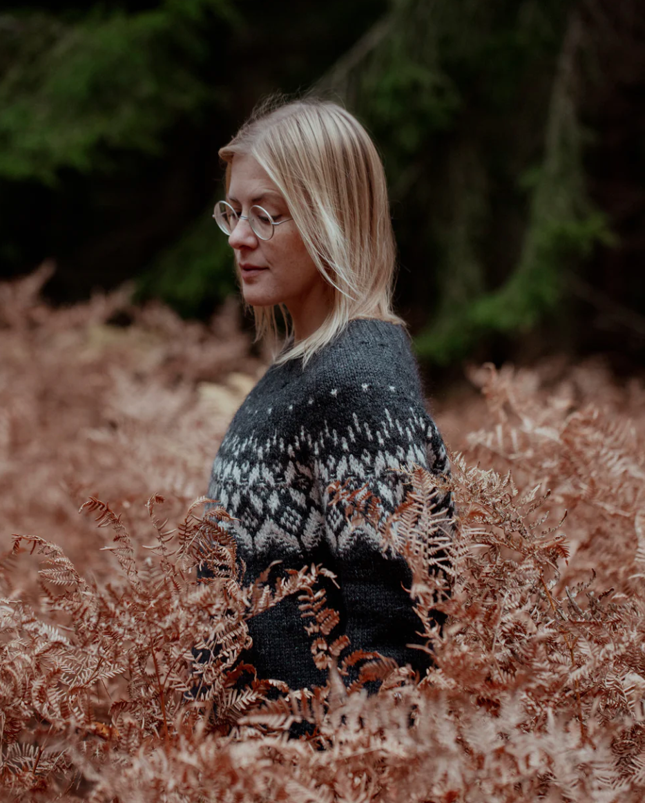 Lotta H. Löthgren is a knitwear designer, writer and yarn-dyer living with her husband, children, dogs and chickens in a small village in the southeast of Sweden, where she also runs her own yarn shop. Lotta leads a small, quiet life close to nature and the changing seasons. As a designer, she loves to interpret natural elements into practical and wearable garments, perfect for her way of life.