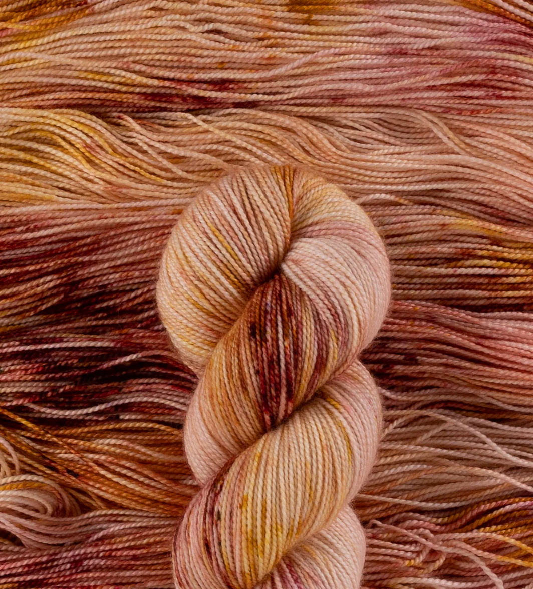 This merino is superwash which keeps the fibers from felting and takes dye easily creating saturated, vibrant colors. We enjoy creating new colors on this base first! The addition of nylon gives the superwash merino more elasticity and durability, making it a great option for socks. It also a favorite for shawls and colorwork sweaters.