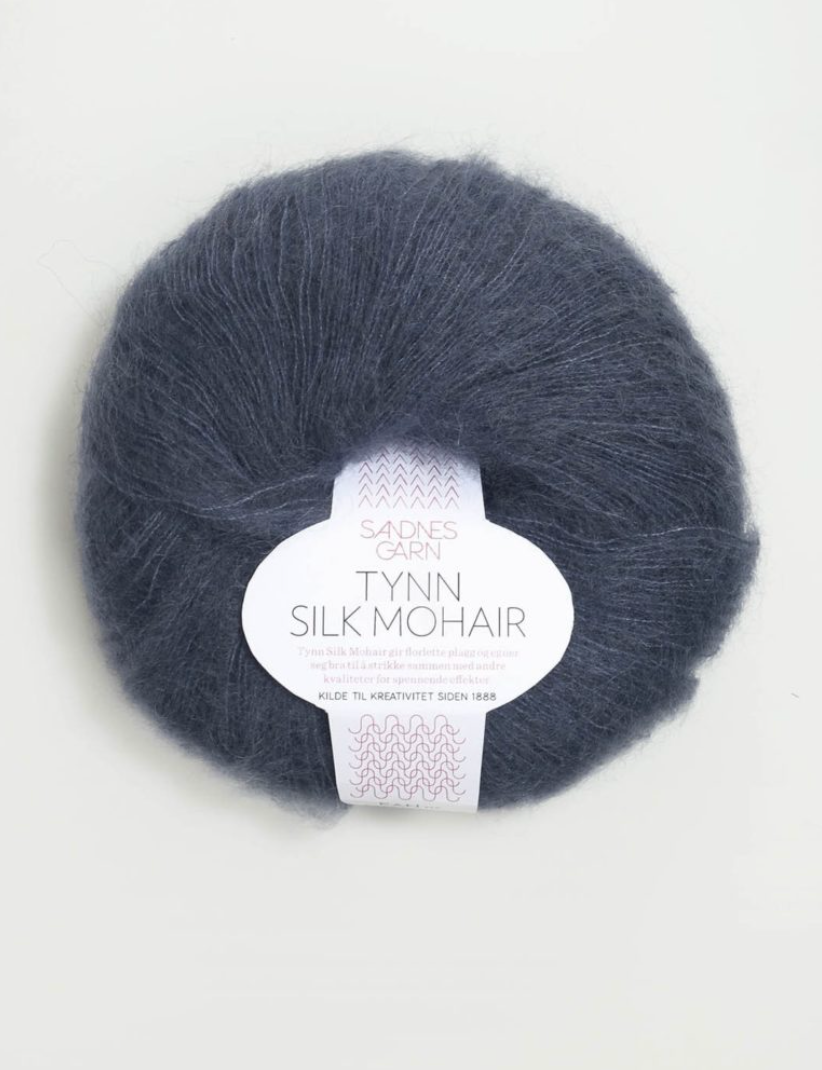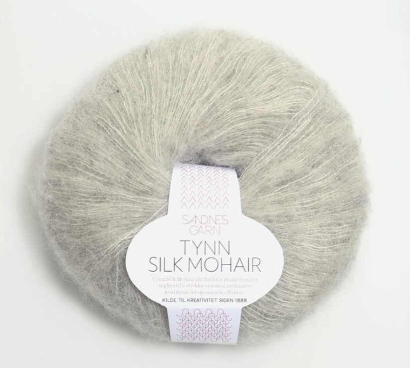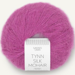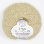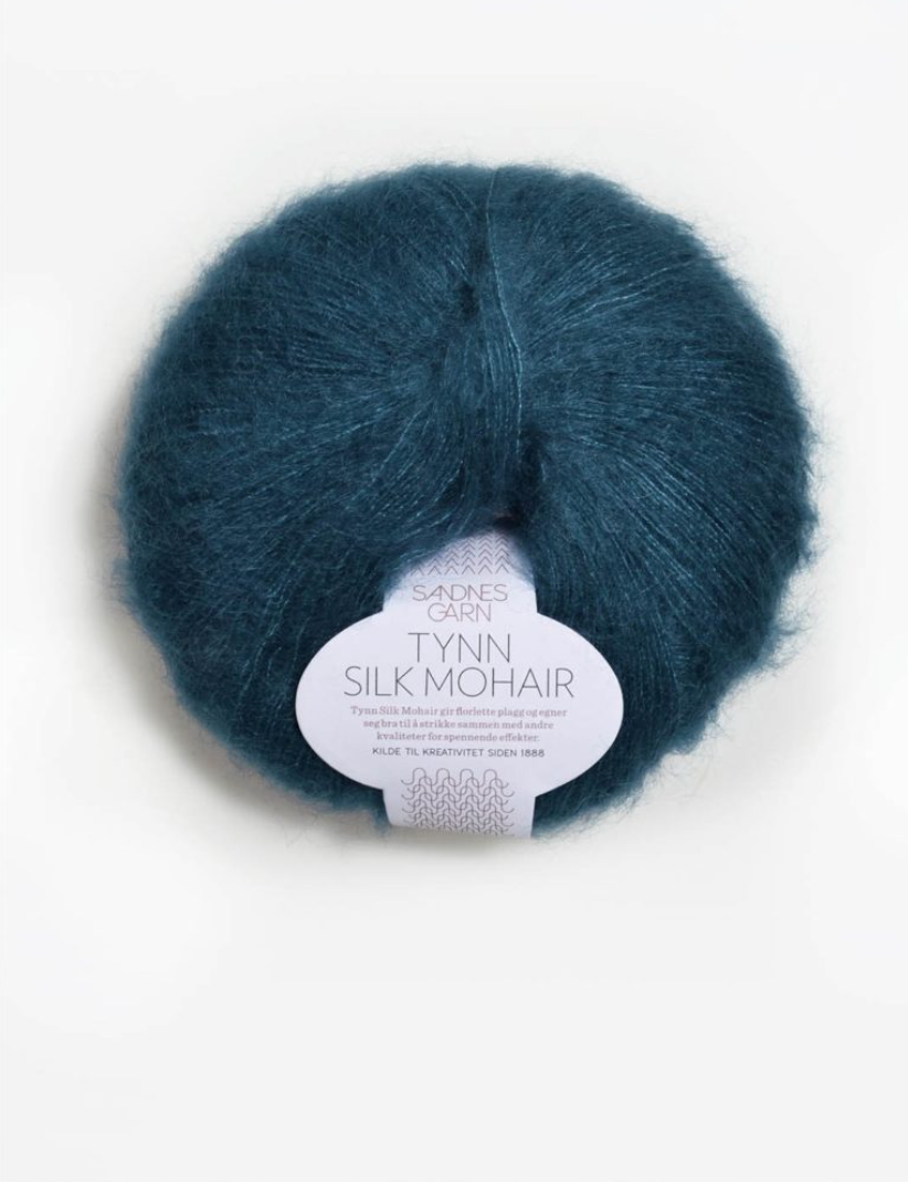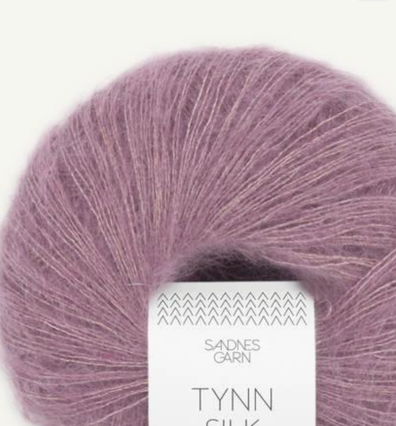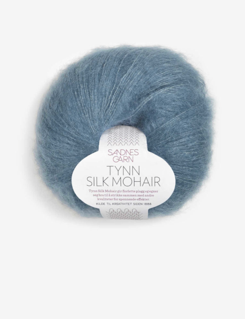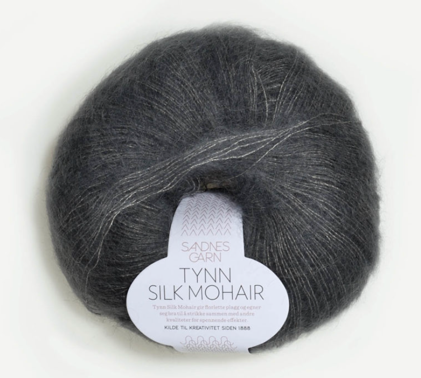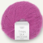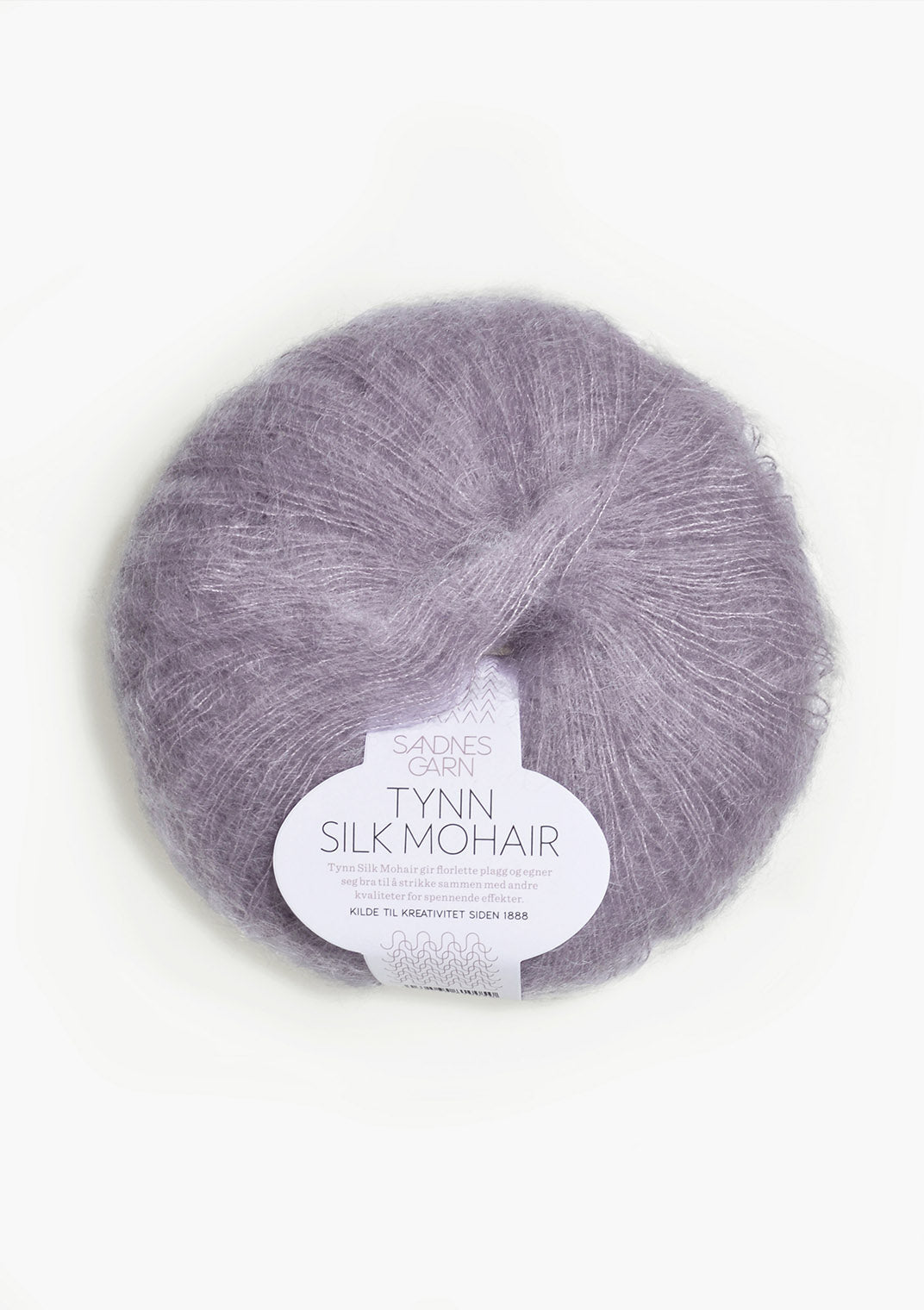 Tynn (Thin) Silk Mohair creates flattering garments and is ideal for knitting along with other yarns for exciting effects. Tynn Silk Mohair contains 57% mohair, 15% wool and 28% silk.