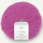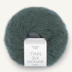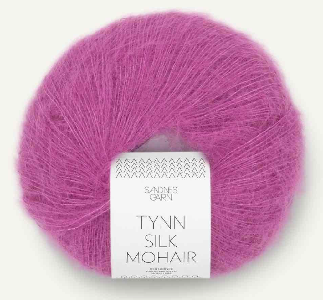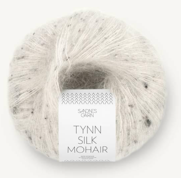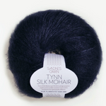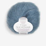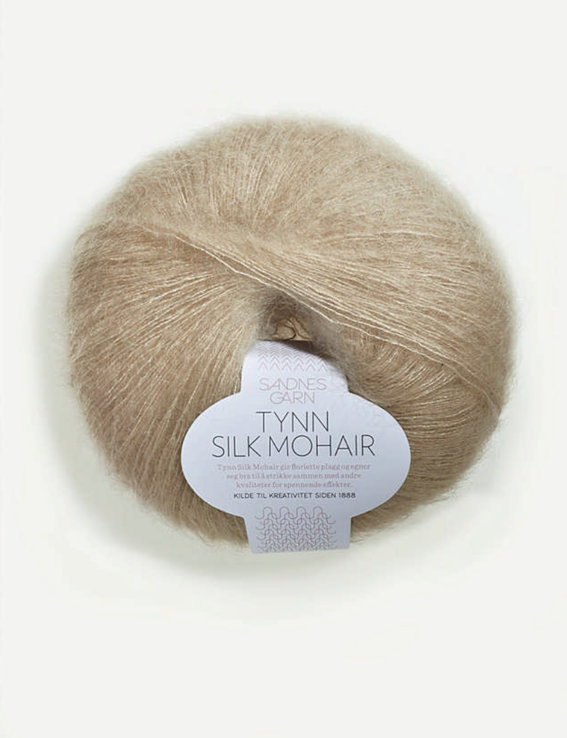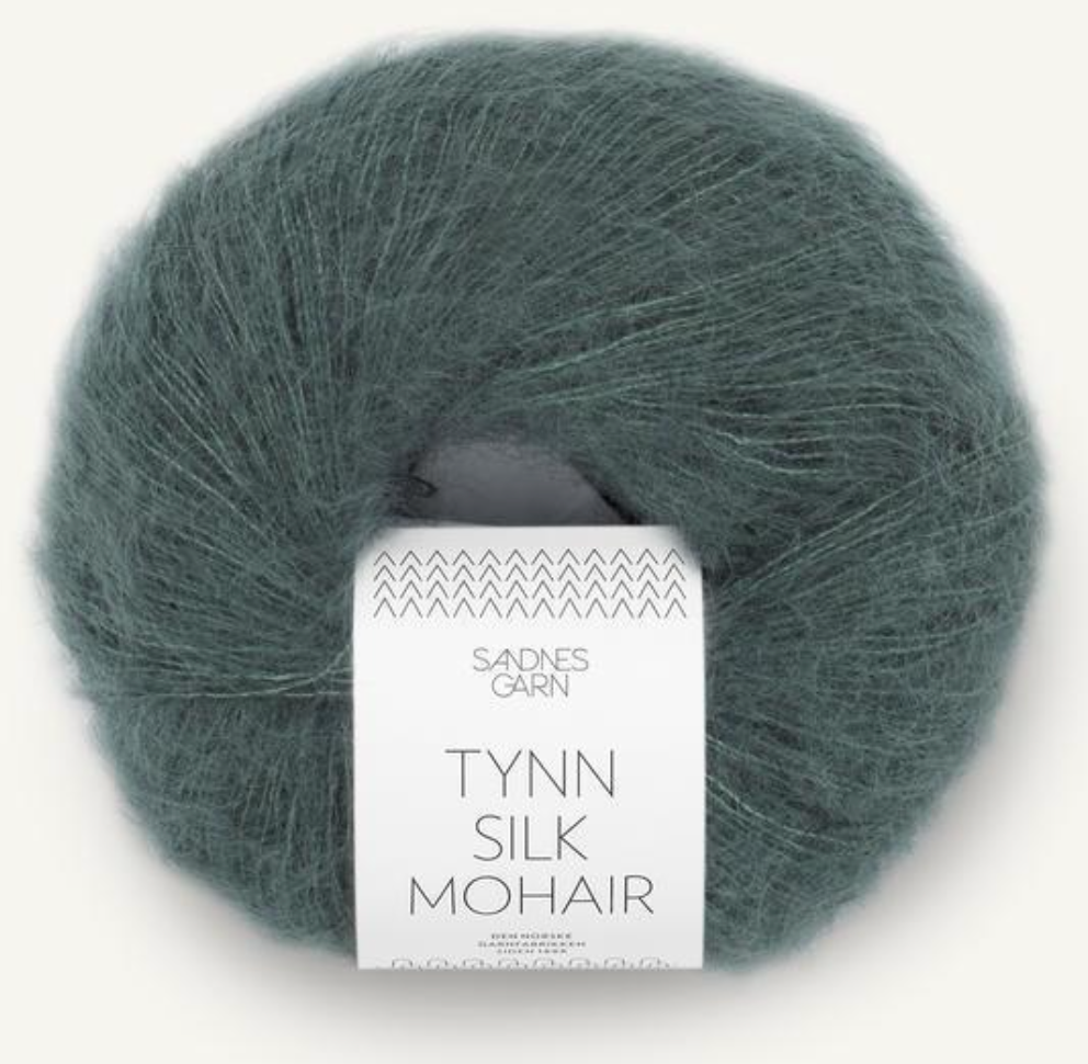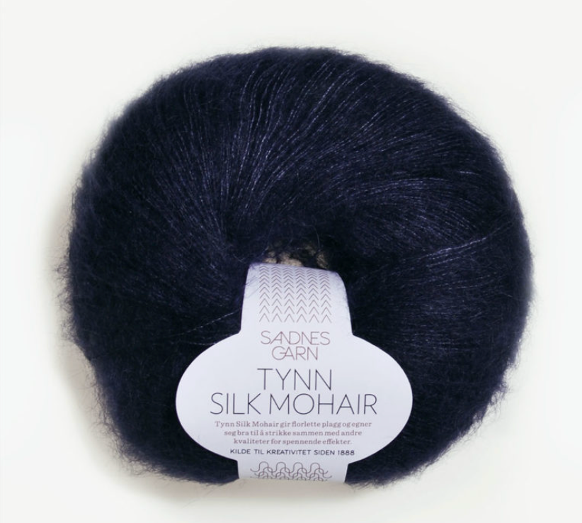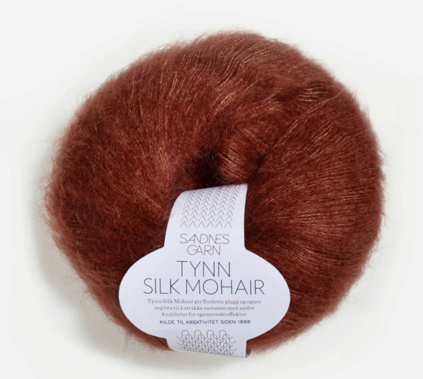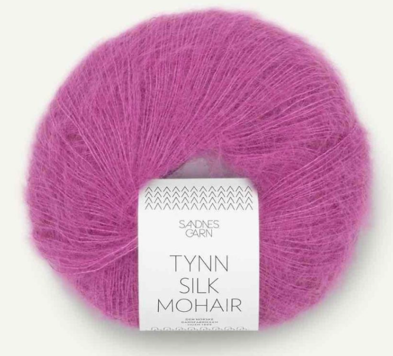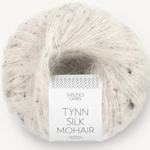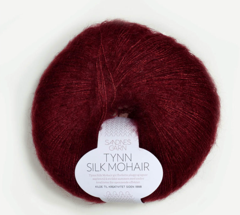 Tynn (Thin) Silk Mohair creates flattering garments and is ideal for knitting along with other yarns for exciting effects. Tynn Silk Mohair contains 57% mohair, 15% wool and 28% silk.