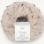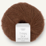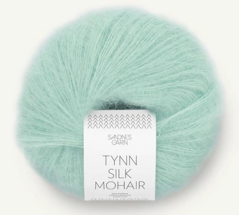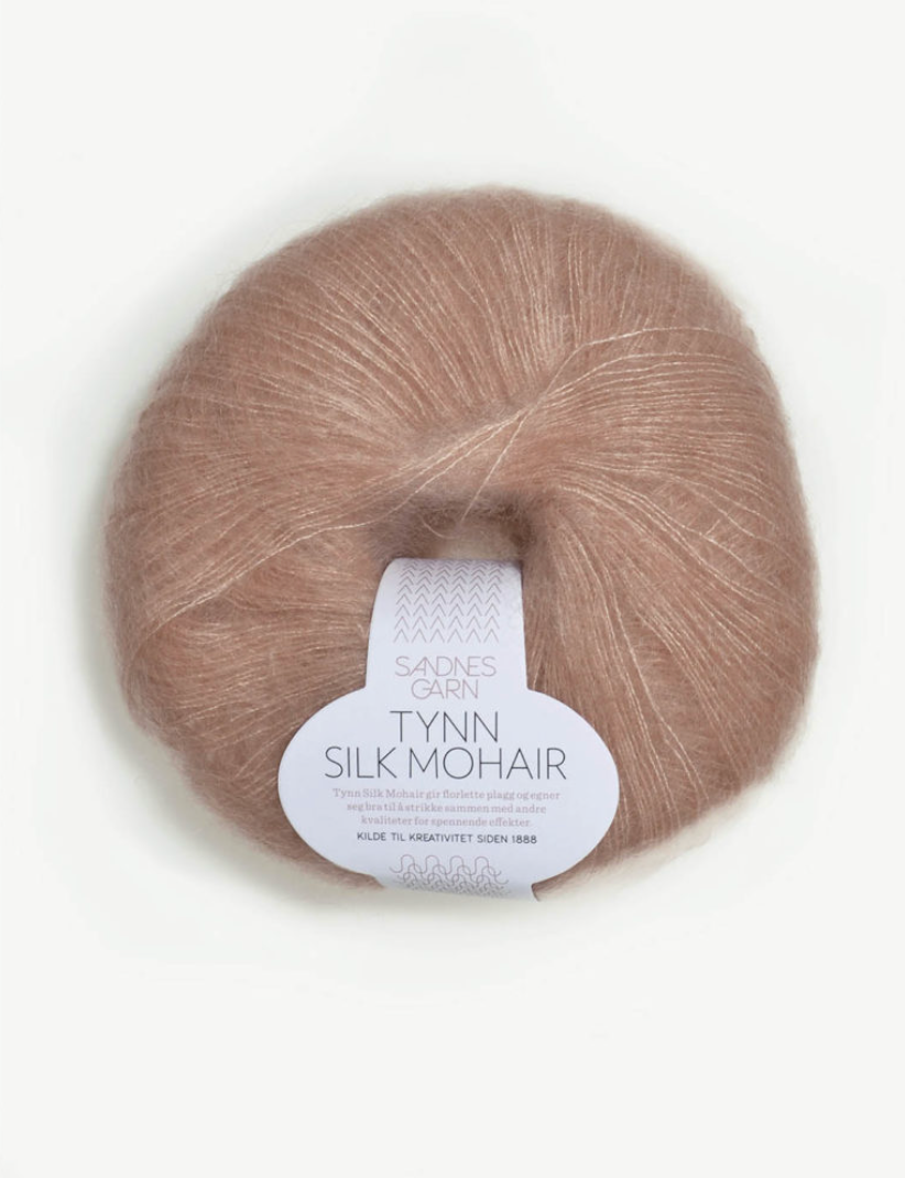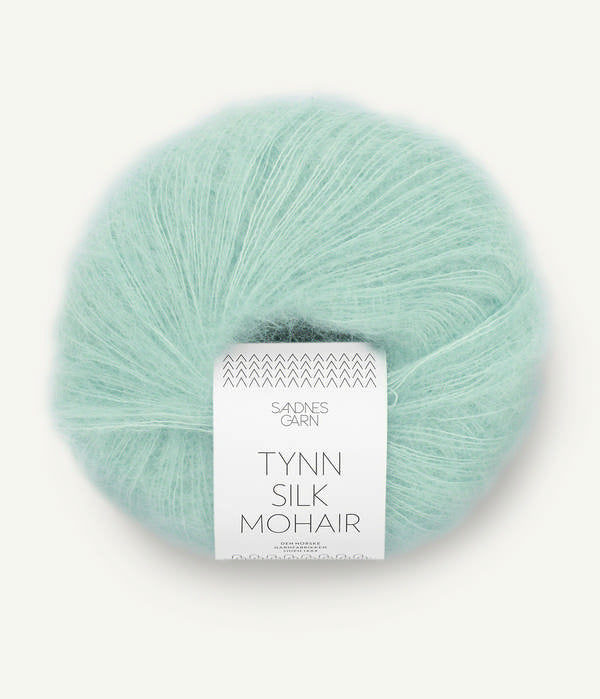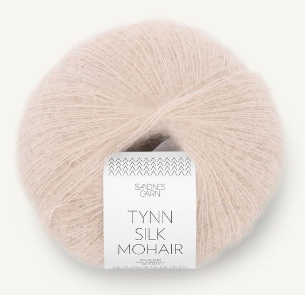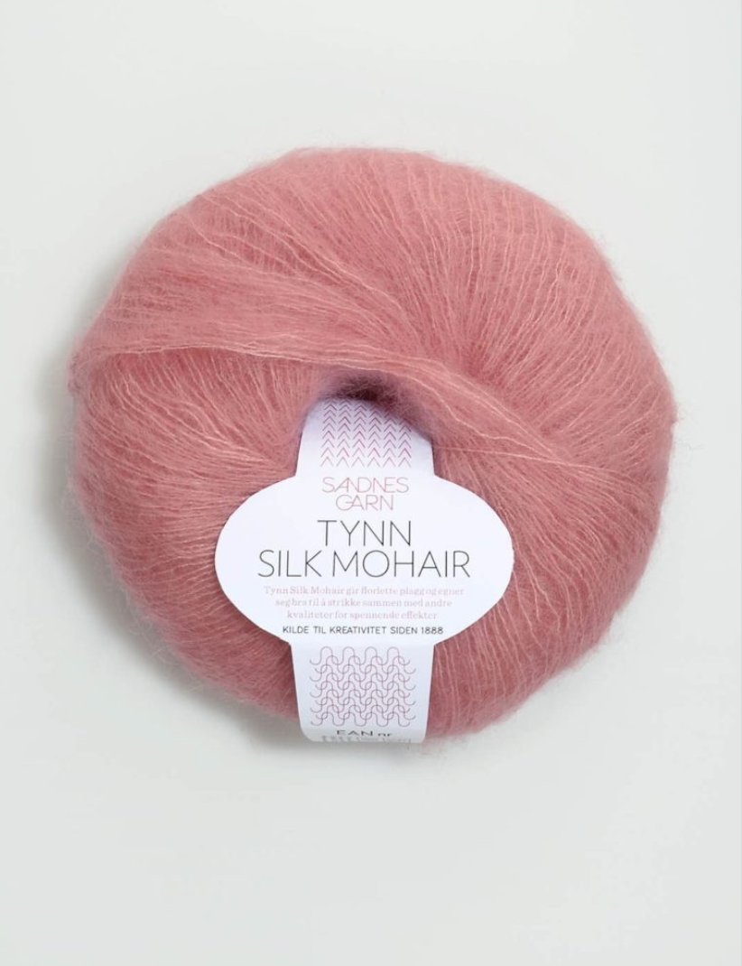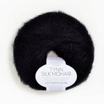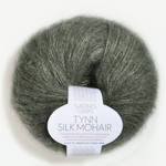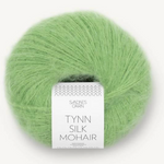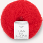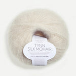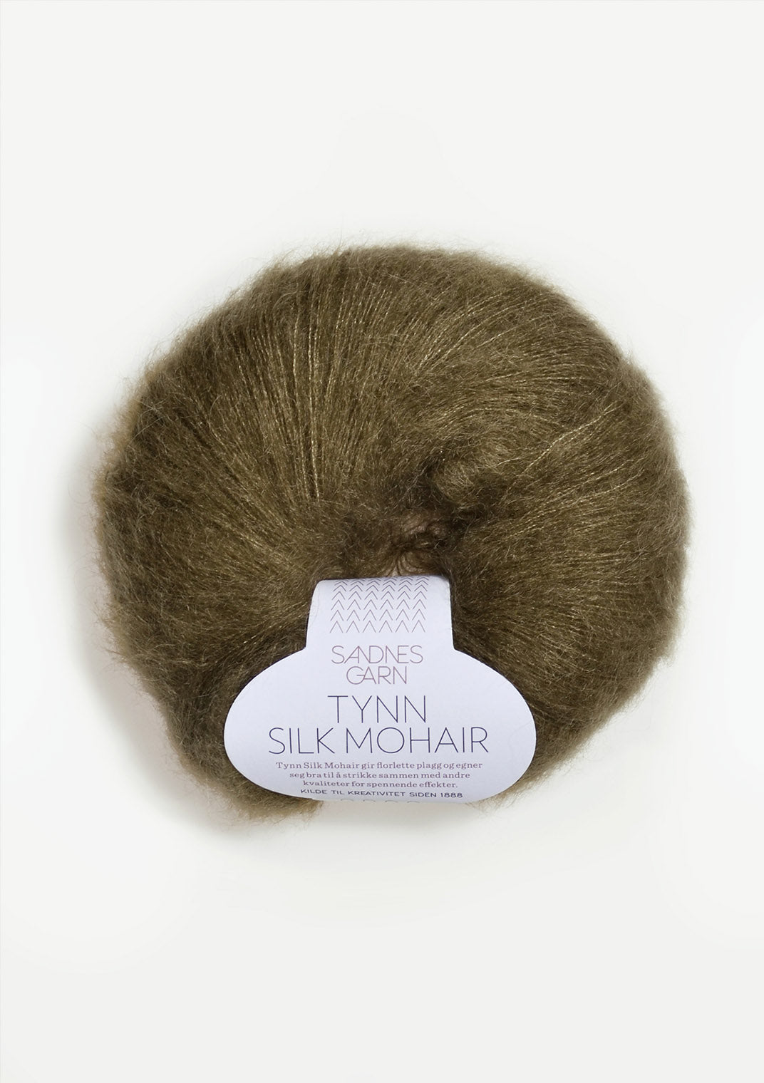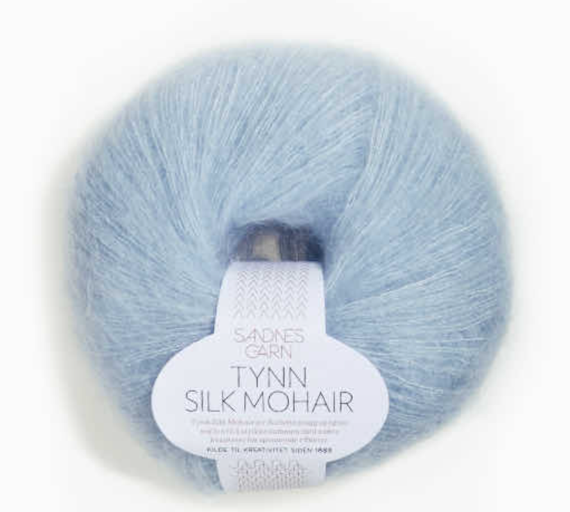 Tynn (Thin) Silk Mohair creates flattering garments and is ideal for knitting along with other yarns for exciting effects. Tynn Silk Mohair contains 57% mohair, 15% wool and 28% silk.