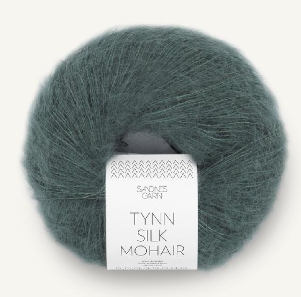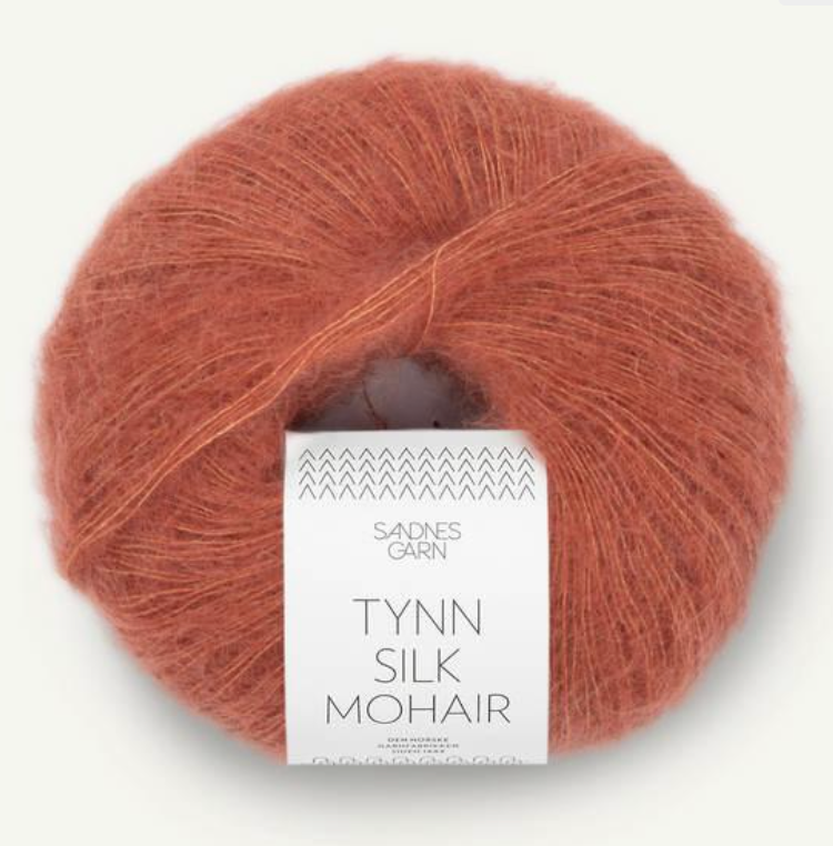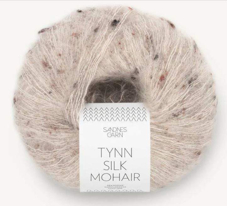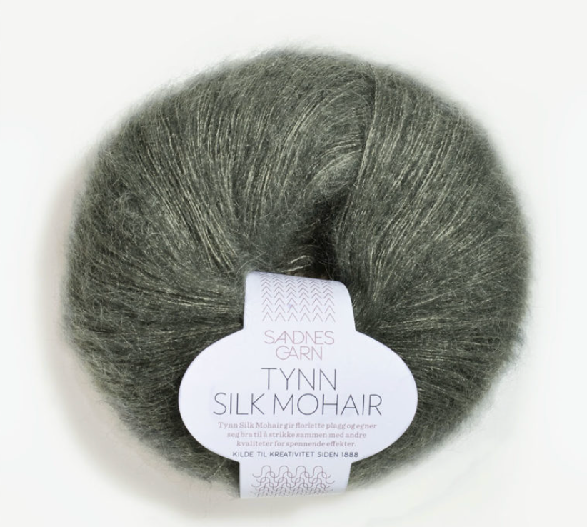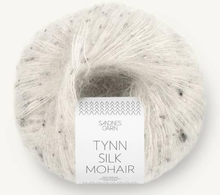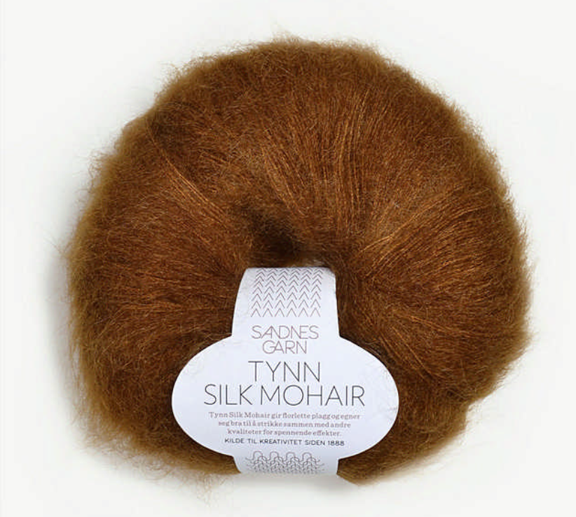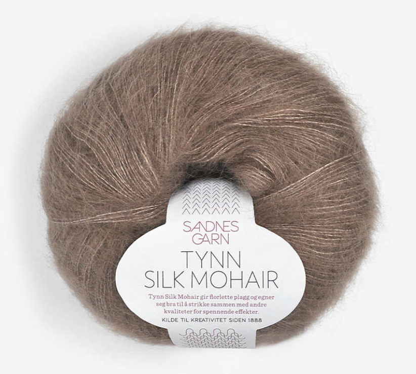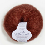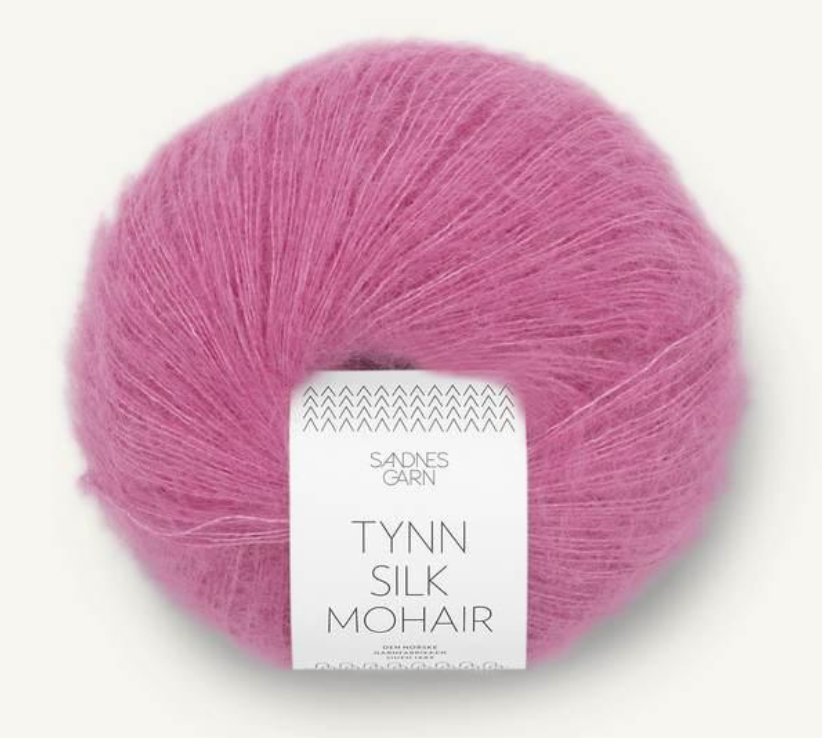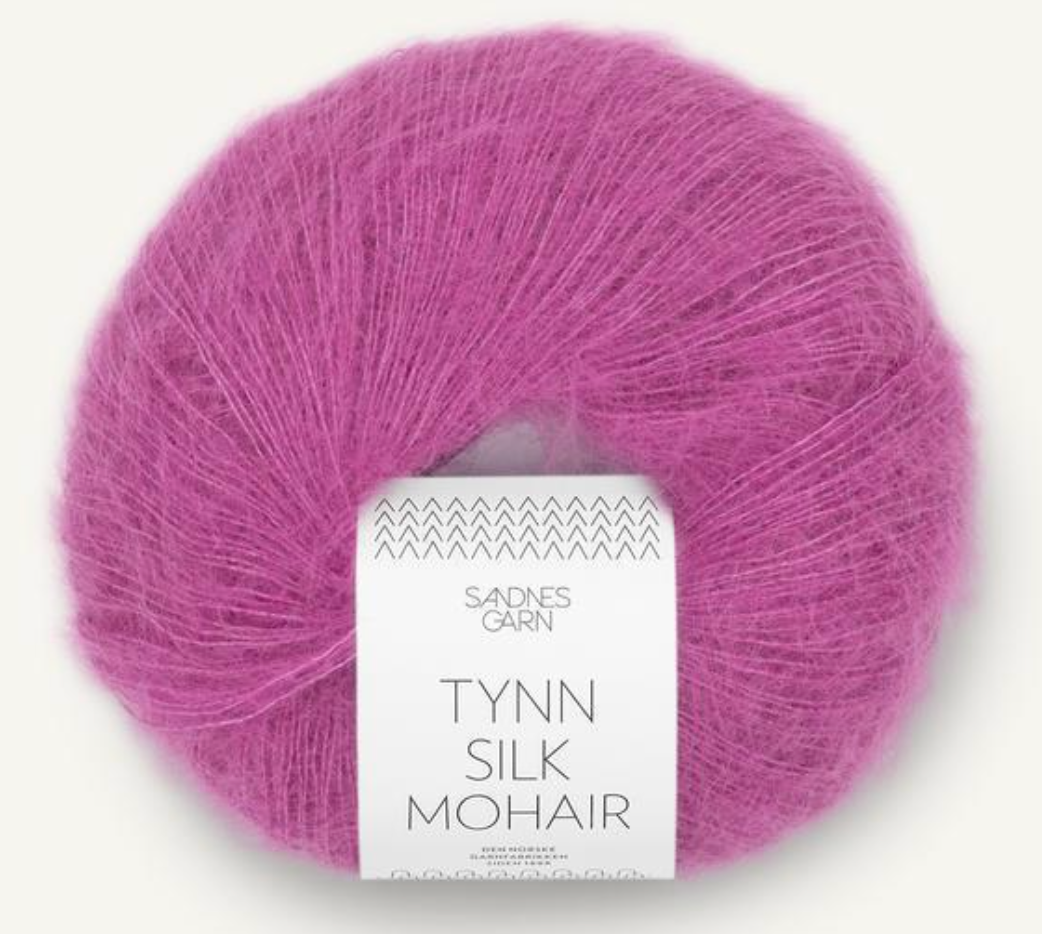 Tynn (Thin) Silk Mohair creates flattering garments and is ideal for knitting along with other yarns for exciting effects. Tynn Silk Mohair contains 57% mohair, 15% wool and 28% silk.