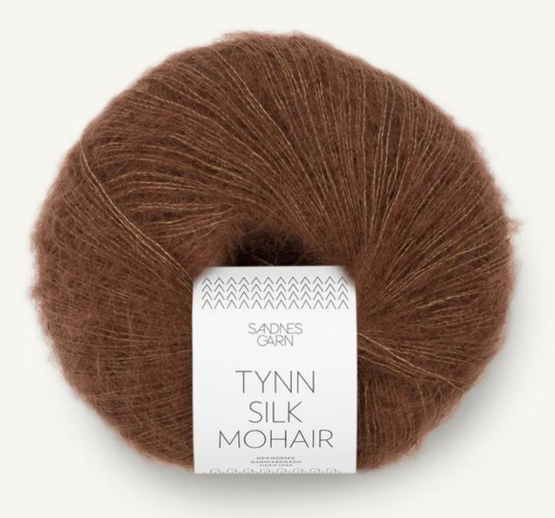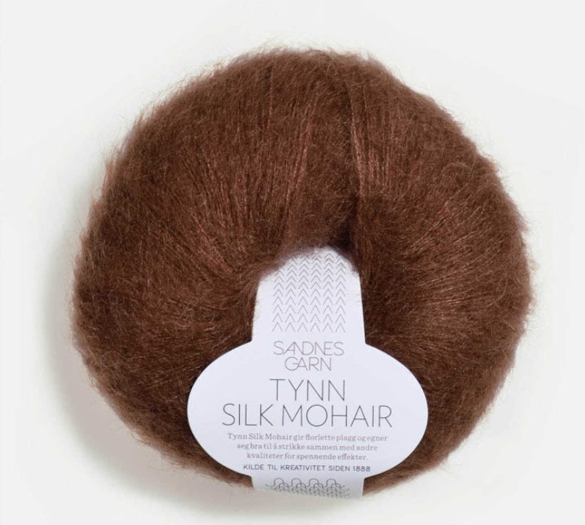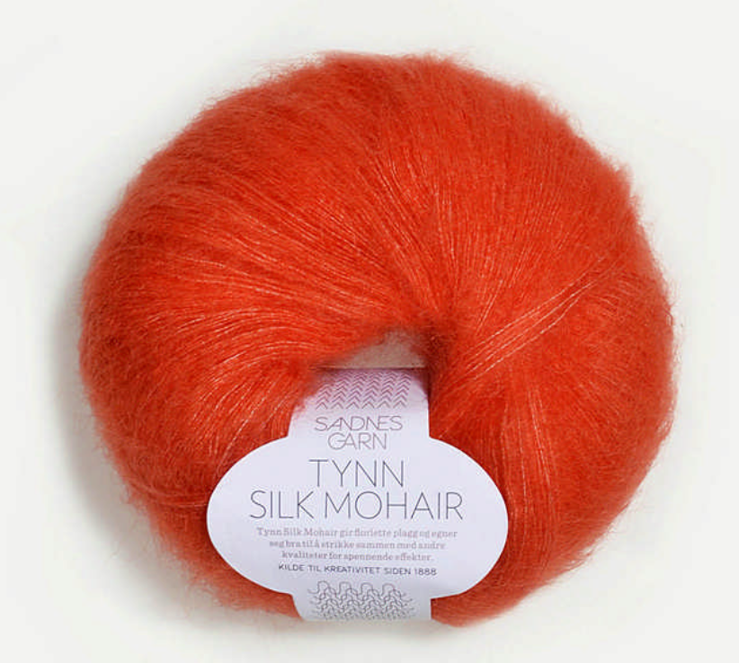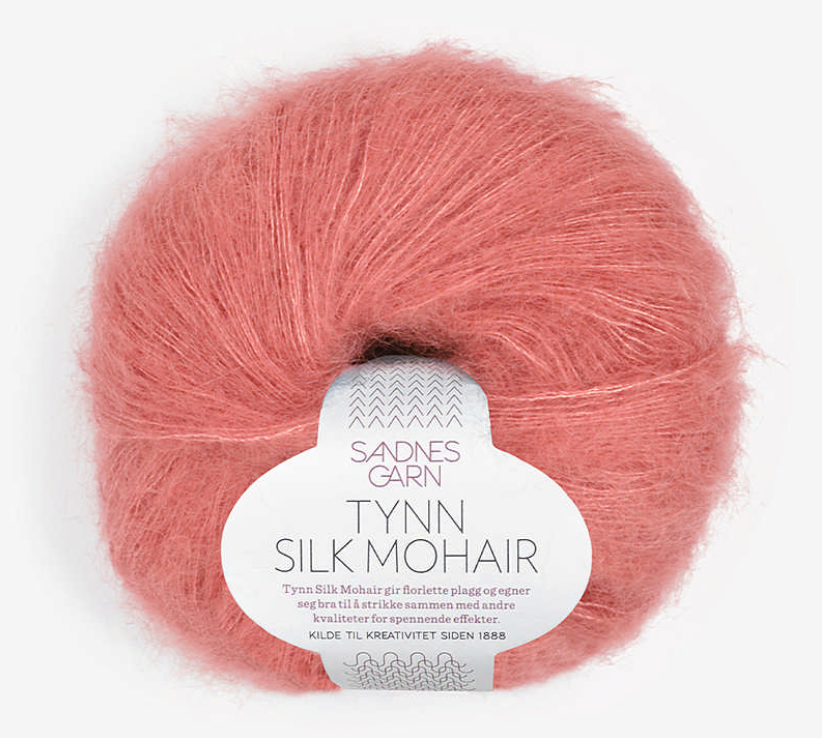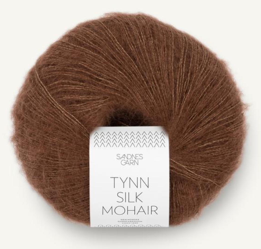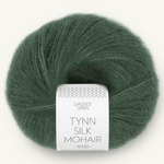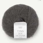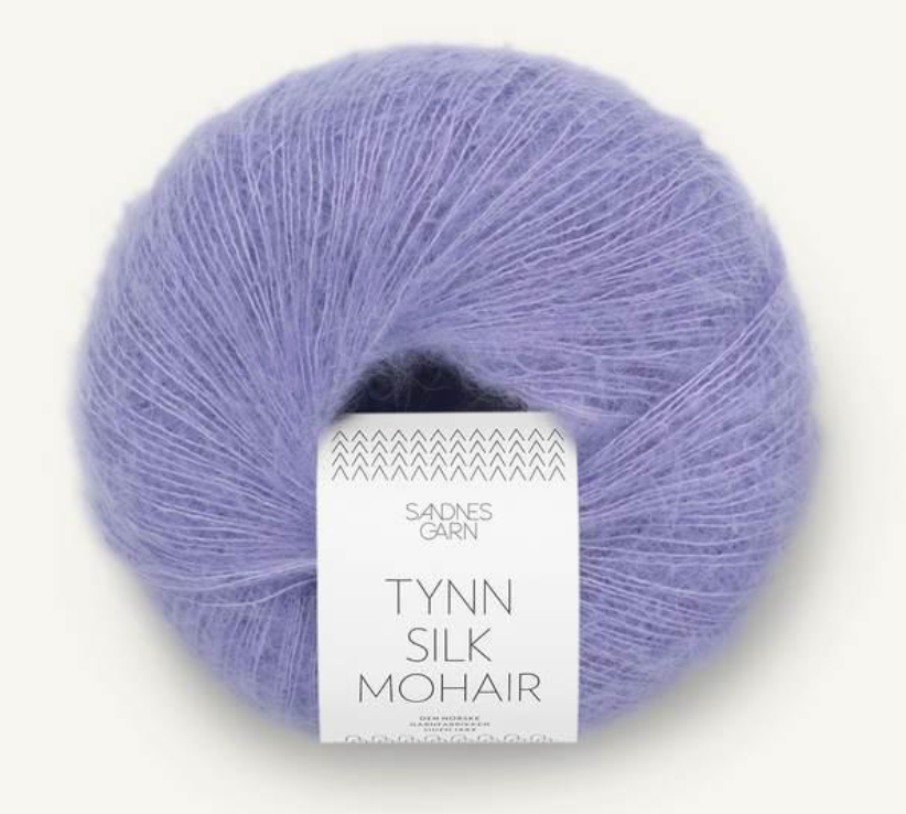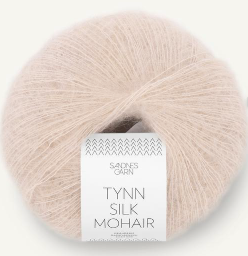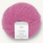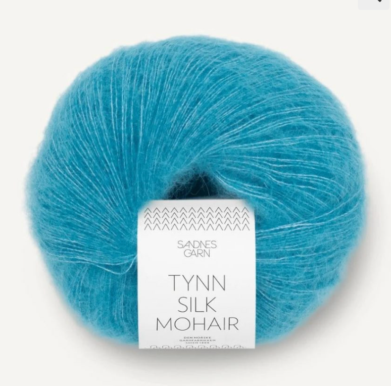 Tynn (Thin) Silk Mohair creates flattering garments and is ideal for knitting along with other yarns for exciting effects. Tynn Silk Mohair contains 57% mohair, 15% wool and 28% silk.