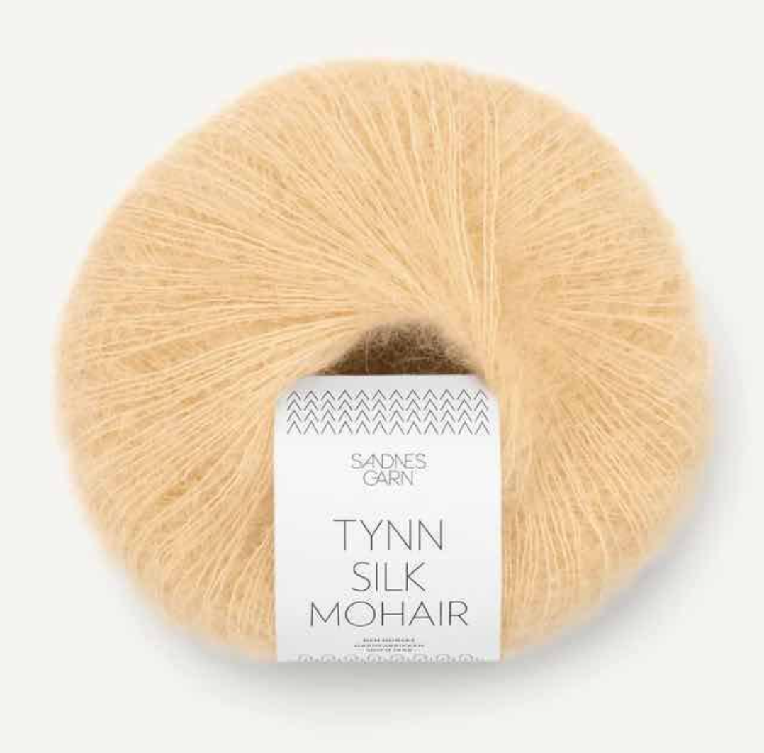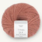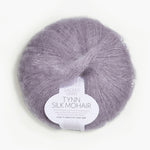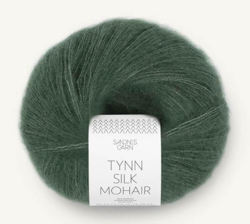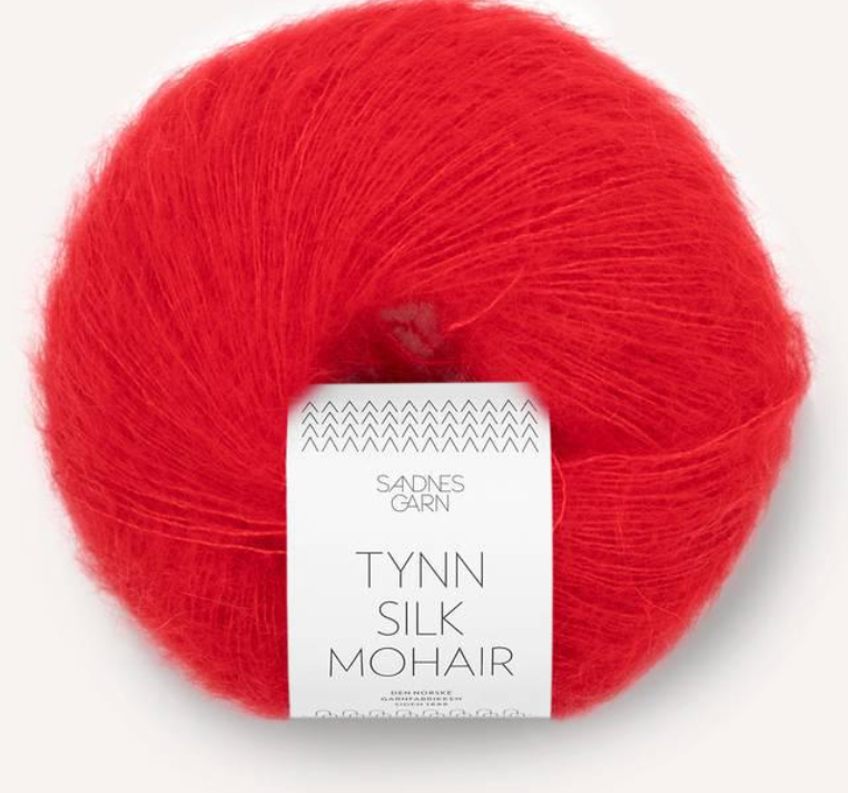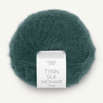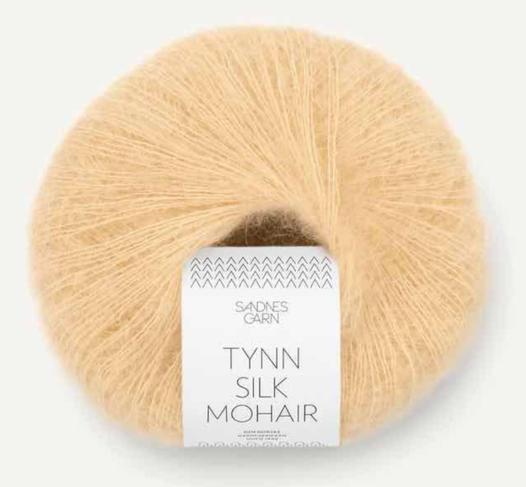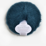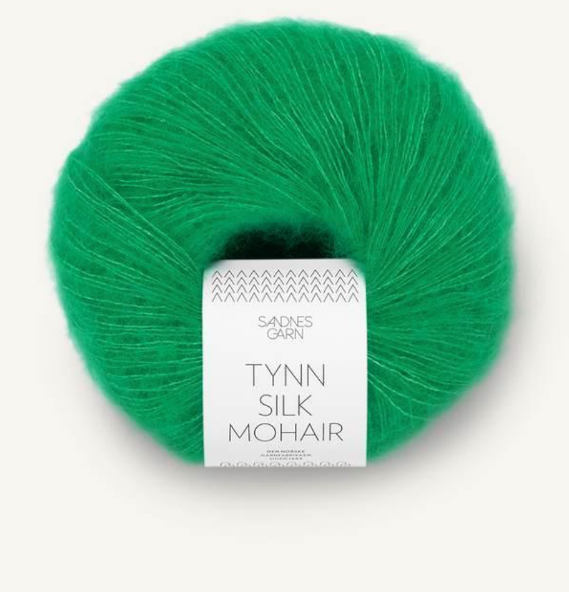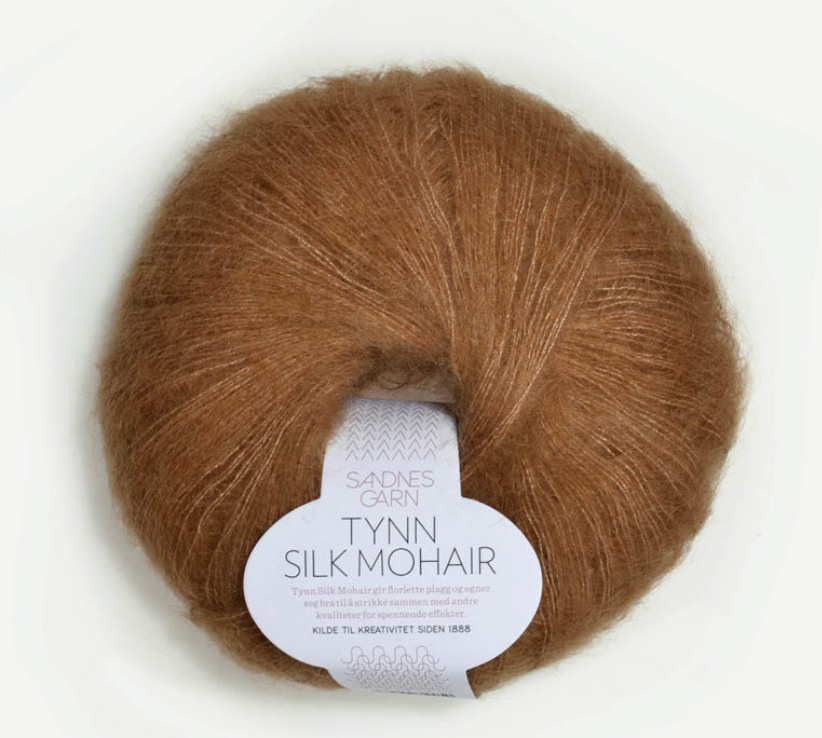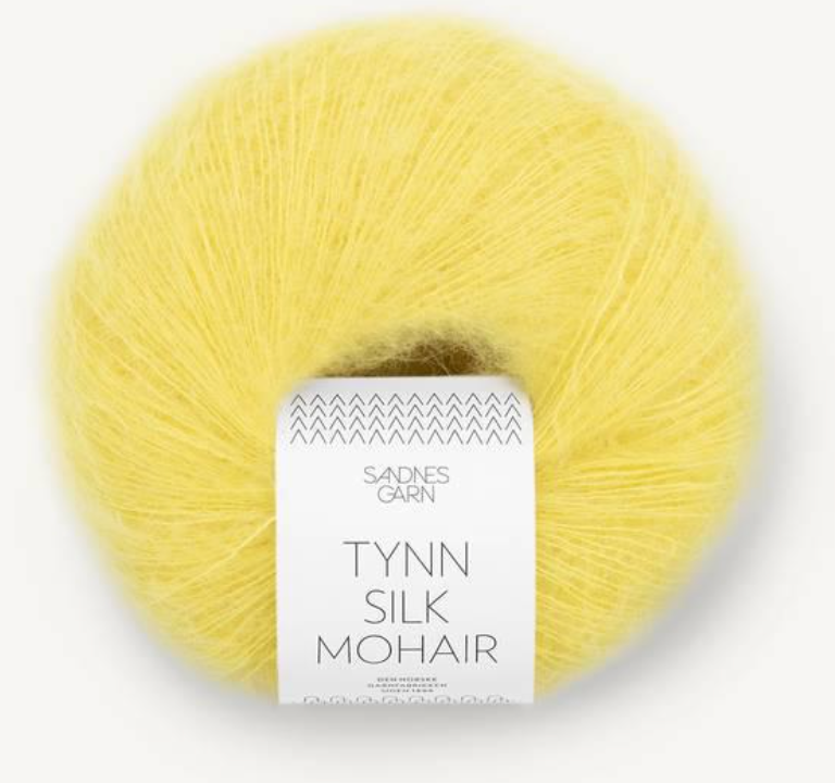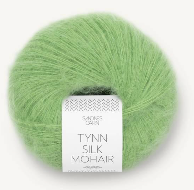 Tynn (Thin) Silk Mohair creates flattering garments and is ideal for knitting along with other yarns for exciting effects. Tynn Silk Mohair contains 57% mohair, 15% wool and 28% silk.