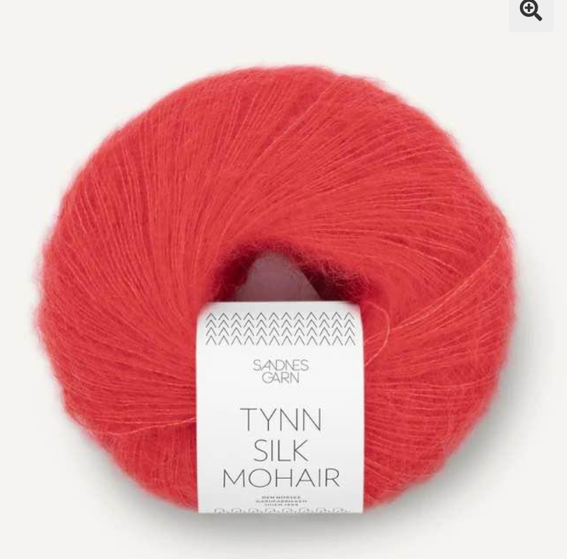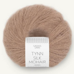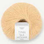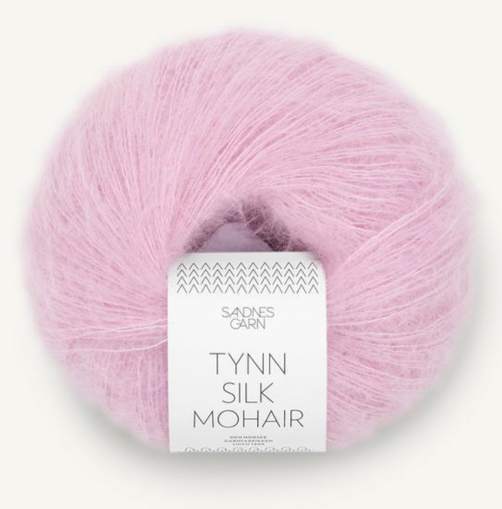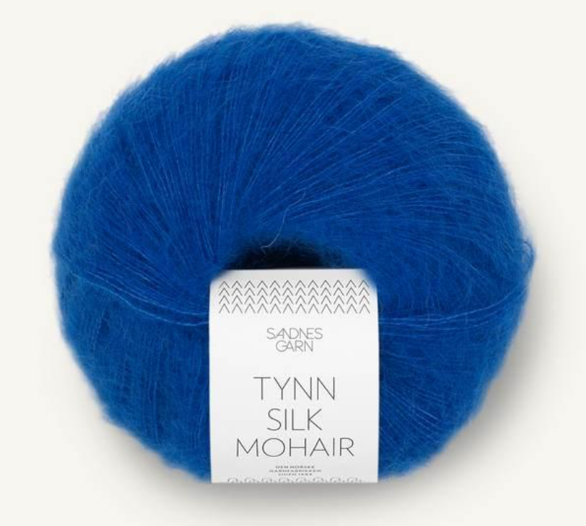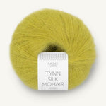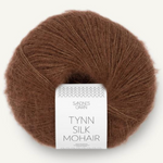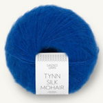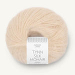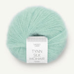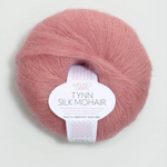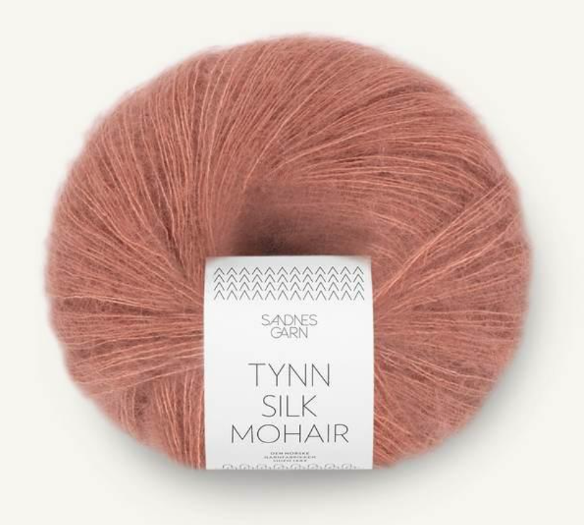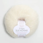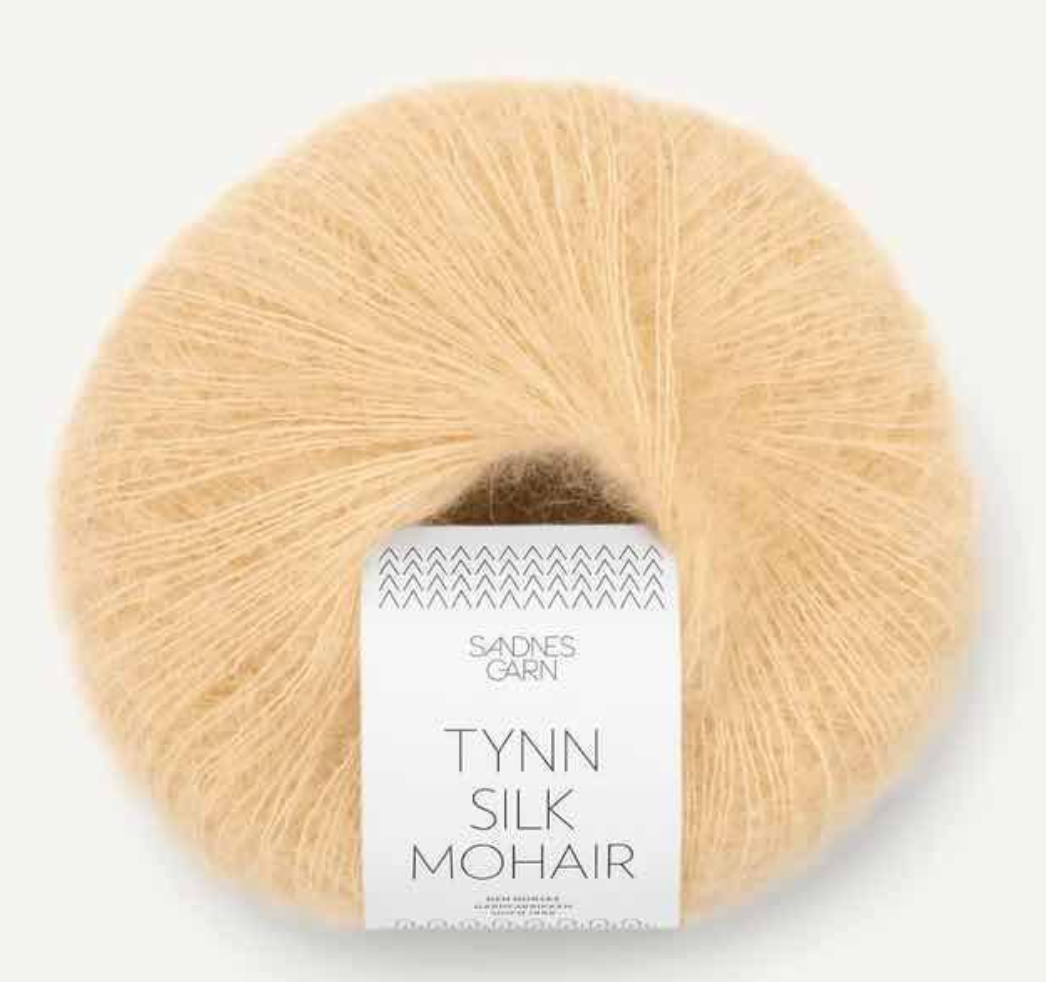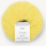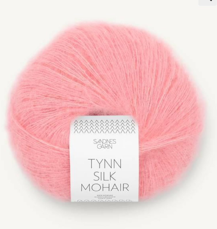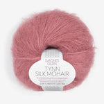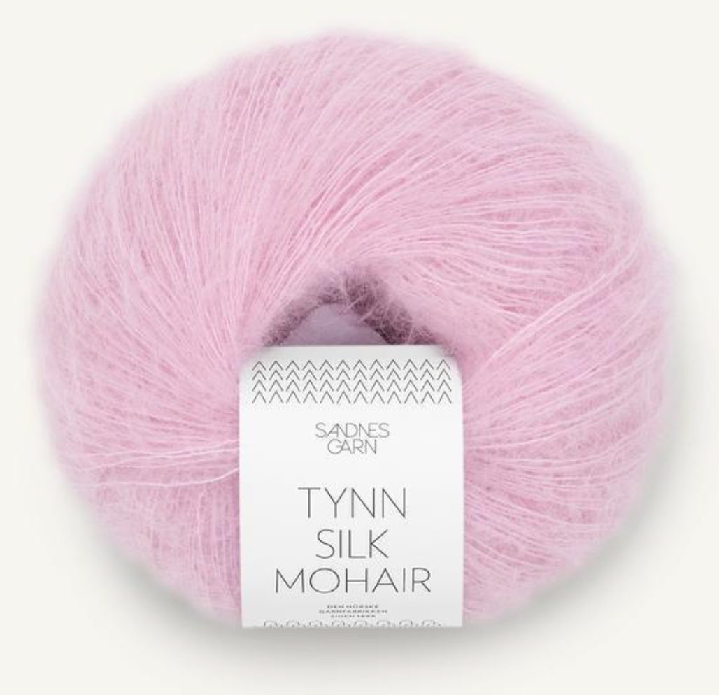 Tynn (Thin) Silk Mohair creates flattering garments and is ideal for knitting along with other yarns for exciting effects. Tynn Silk Mohair contains 57% mohair, 15% wool and 28% silk.
