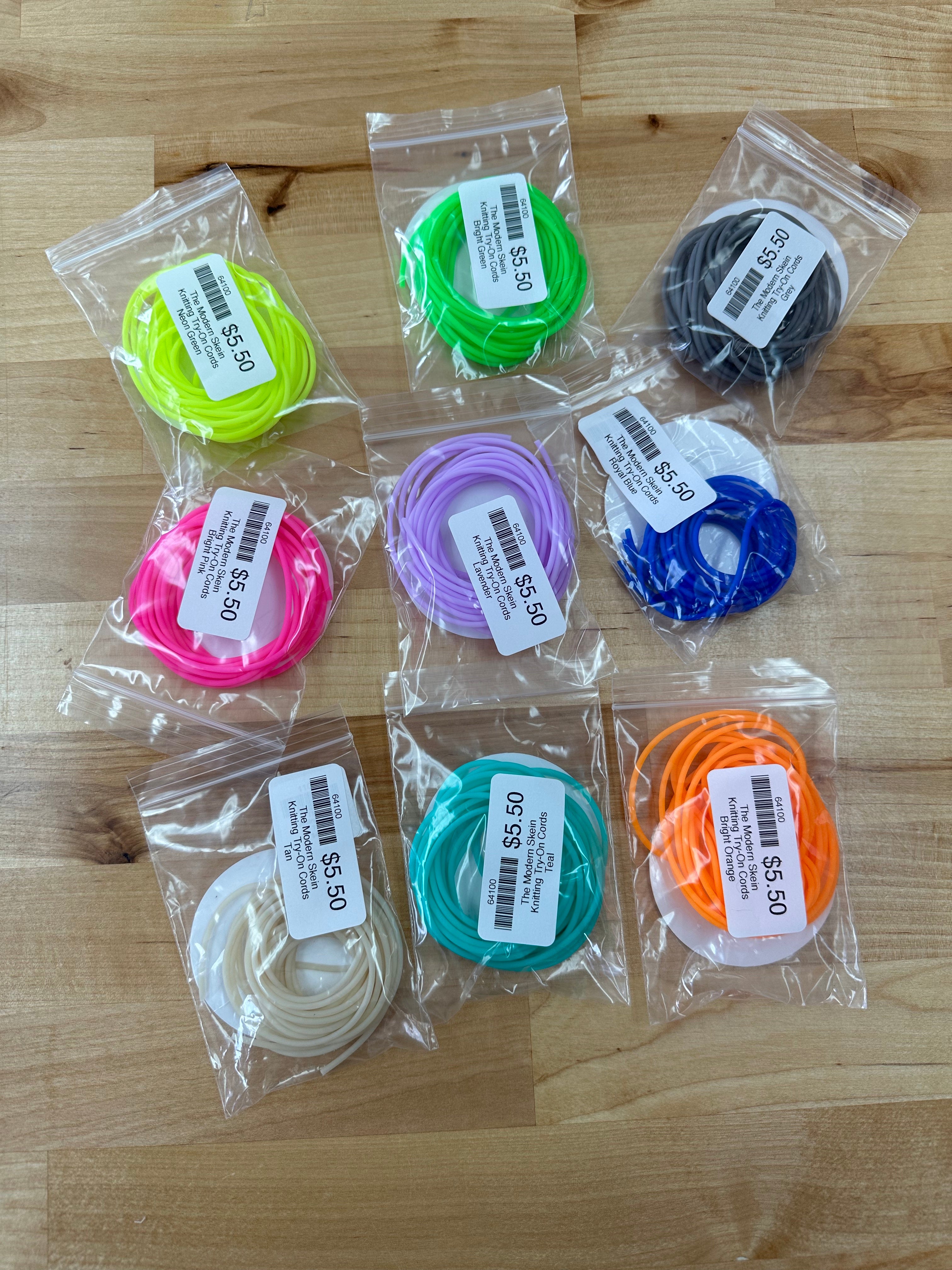 Set of three high quality hollow tubes to use in place of waste yarn! Hollow pvc cord allows for you to slide the tip of your needle in and more easily transfer stitches. Each set contains 1 60inch cord and 2 30inch cords, perfect for sleeves and body to try on your garment or any other project you need to place on hold. Select your color and add to your notions pouch!