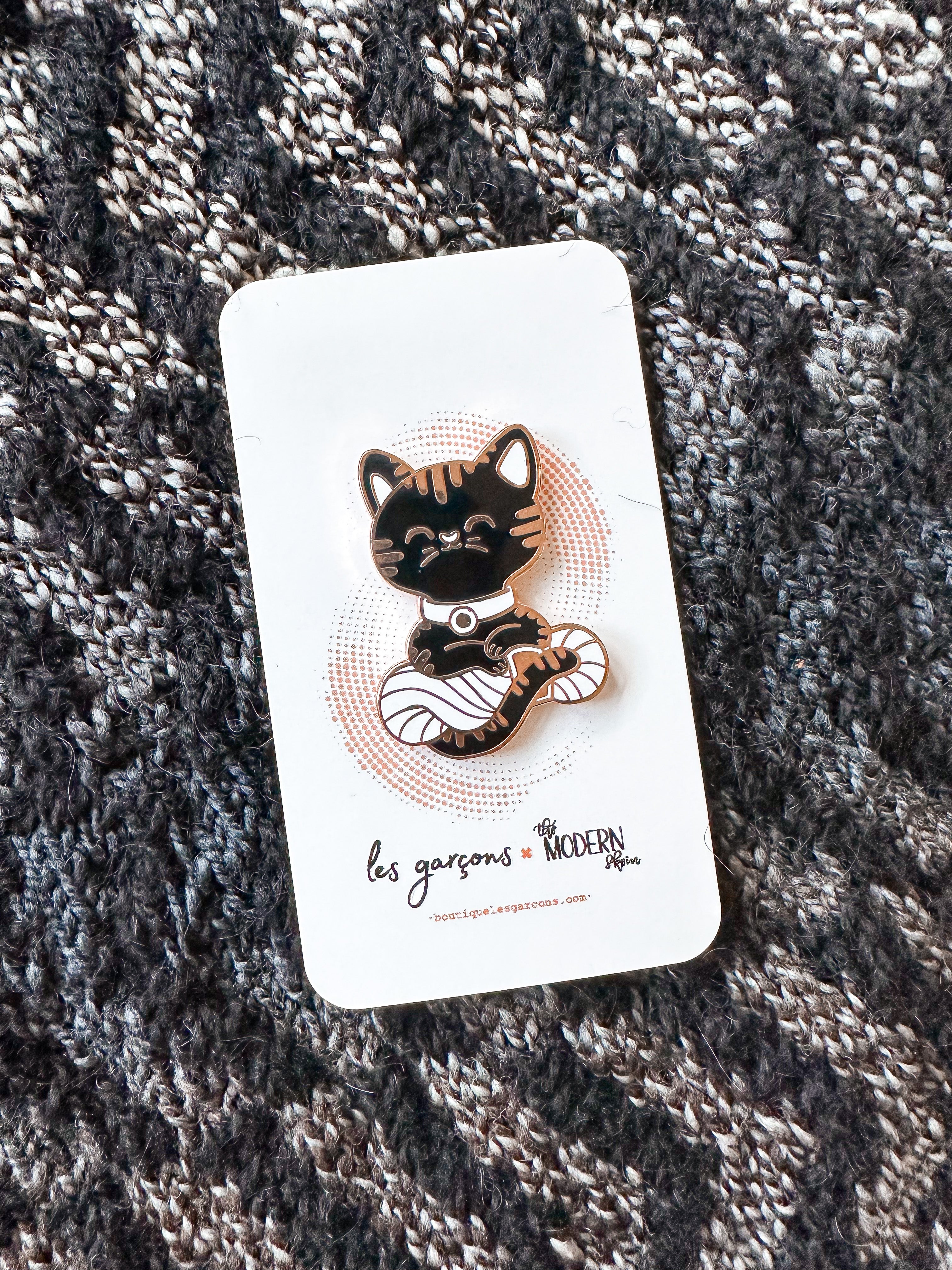 Suri has been immortalized by Max in his wonderful illustrations! This Pin has rubber backing and is done in a beautiful rose gold finish.