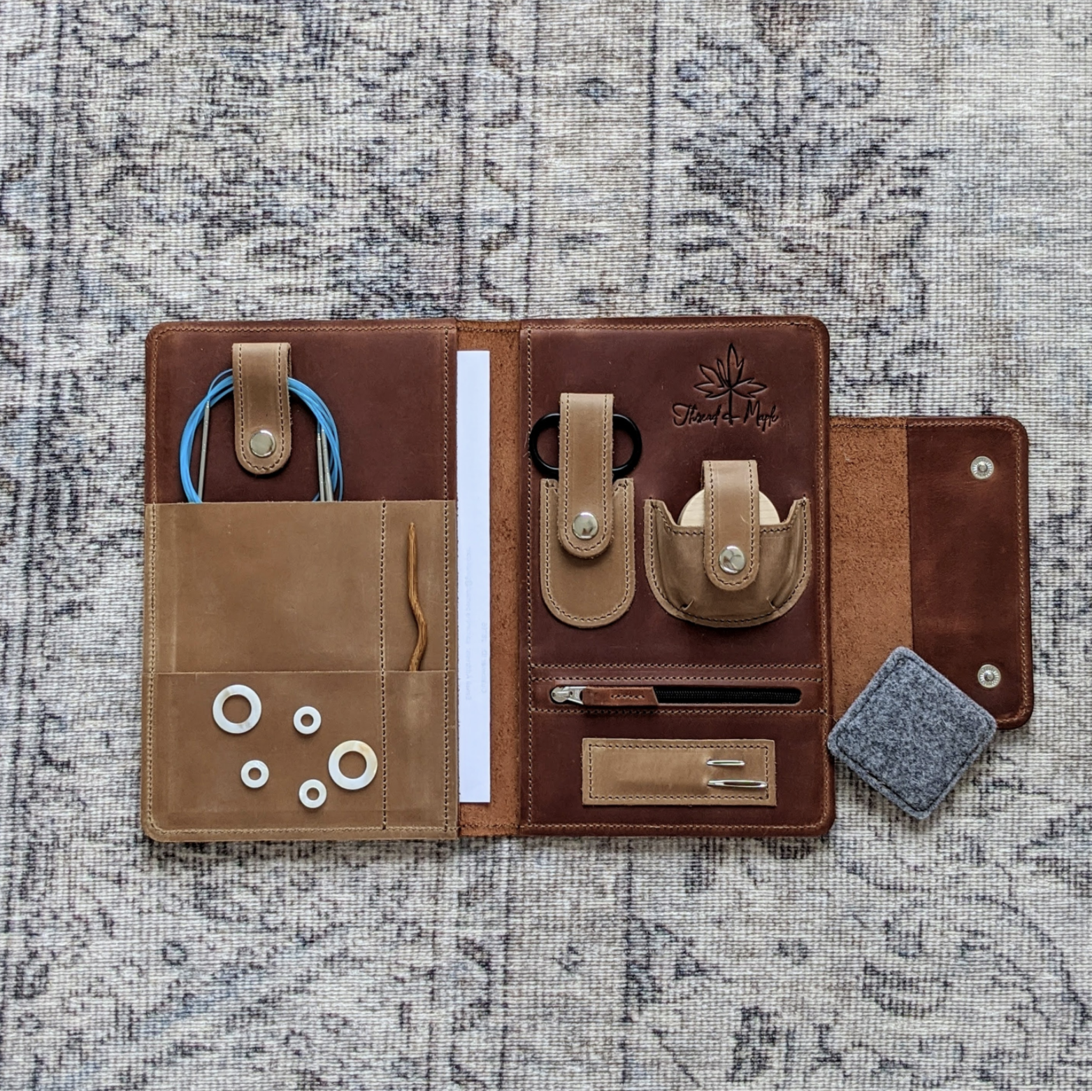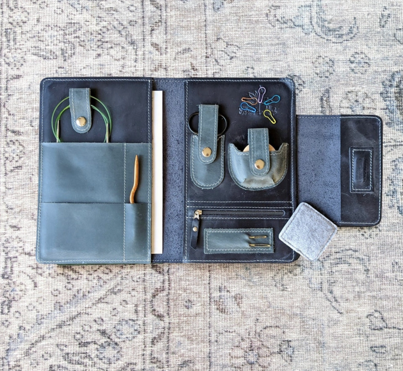Notions Clutch and a hand-picked selection of 5 of our favourite, most-used knitting tools. Simply slip in your knitting needles and your toolset is complete for most knitting projects.