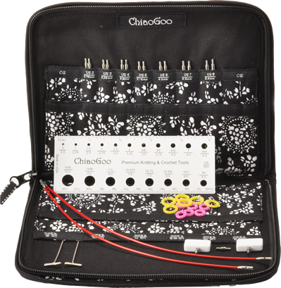 Contains Size US 2 (2.75mm) - US 8 (5mm).Sets include 4″ (10 cm), surgical stainless steel, lace tips and three cable lengths: 8″ (20 cm), 14″ (35 cm), and 22″ (55 cm) cables to make 16″ (40 cm), 22″ (56 cm), and 30″ (76 cm) circulars. TWIST red cables are memory free! They consist of a multi-strand, steel cable coated with red nylon. Also included with each set are easy-to-read, coded cable connectors, end stoppers, T-shaped tightening keys, stitch markers, a needle gauge and compact, zipper-enclosed, fabric case. TWIST & SPIN tips, cables and accessories are all switchable!