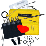 This new Shorties [L] extension set includes 3″ (8cm) long tips in sizes US 9 – 11 (5.5 – 8mm) and cables to make 12″ (30cm) or 14″ (36cm) long circulars. The set comes in a nylon, yellow pocket pouch and includes three SWIV360 cables (two 6″ and one 8″), end stoppers, connectors, stitch markers, a swatch/needle gauge, heart-shaped gripper and tip sleeve.